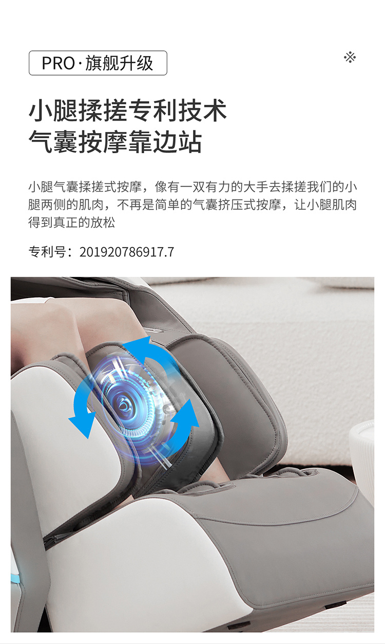 銳珀爾集十余年技術(shù)積累,傾力打造銳珀爾新款按摩椅4D穴感總裁椅,擁有全新的AI智能語音,小腿溫?zé)崛啻?、腳底震動、4D機械手等全新功能創(chuàng)新,智能健康體測,可以檢測血氧、心率、微循環(huán)等數(shù)值,通過大數(shù)據(jù)分析,給您提供合理的改善方法,時刻關(guān)注您的健康狀況;超大液晶智能觸控,專為總裁量身打造的特色按摩程序,20分鐘快速補充精力,多種按摩程序,滿足全家人的需求。