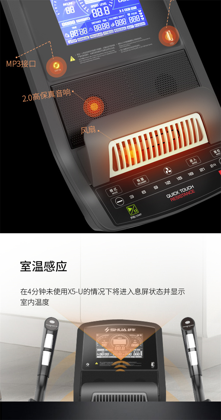 舒華立式商用健身車SH-B9100U(V10)觸屏版擁有超大顯示和操作屏幕, 可以任意設(shè)置阻力、時間和距離等參數(shù),還可以即時顯示心跳和轉(zhuǎn)速等數(shù)據(jù),同時,SH-B9100U提供多項科學(xué)運動處方,更輕松掌握運動節(jié)奏。